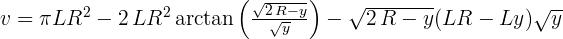 vcyl(y,R,L) = ((integrate(dcyl(y,R),y)) * L).full_simplify() render(v == vcyl(y,R,L),"equ_vol_cylinder1.png","large")(2)![]()