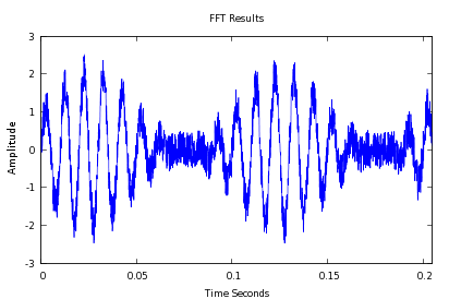 $ ./signal_source -a 2048 -s 10000 -f 100 -m 10 -n 0 | ./fft_processor | ./fft_processor -i | ./gnuplot_driver -i -p