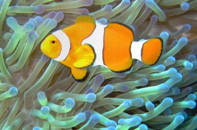 Symbiosis between Clownfish and sea anemone. The fish protects the anemone from anemone-eaters, the anemone protects the fish from fish-eaters. (Wikipedia)